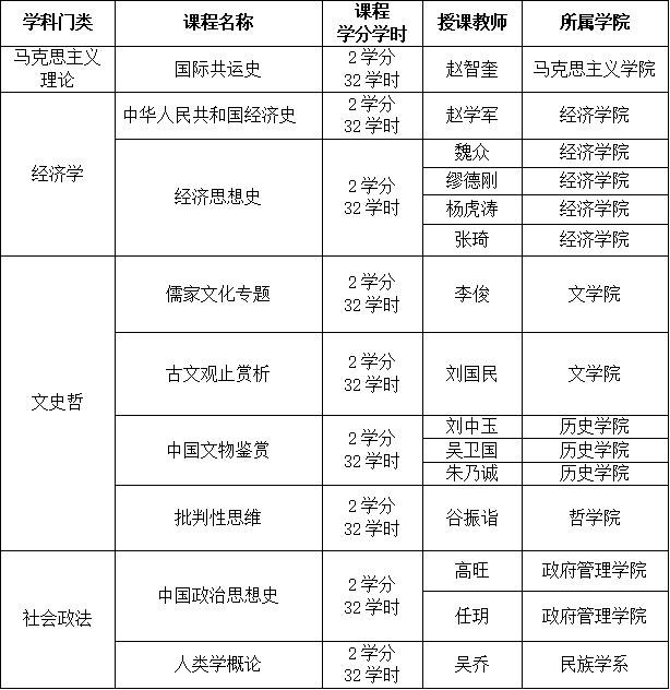 2021年百家乐官网 开设通识课程一览表-2021年7月