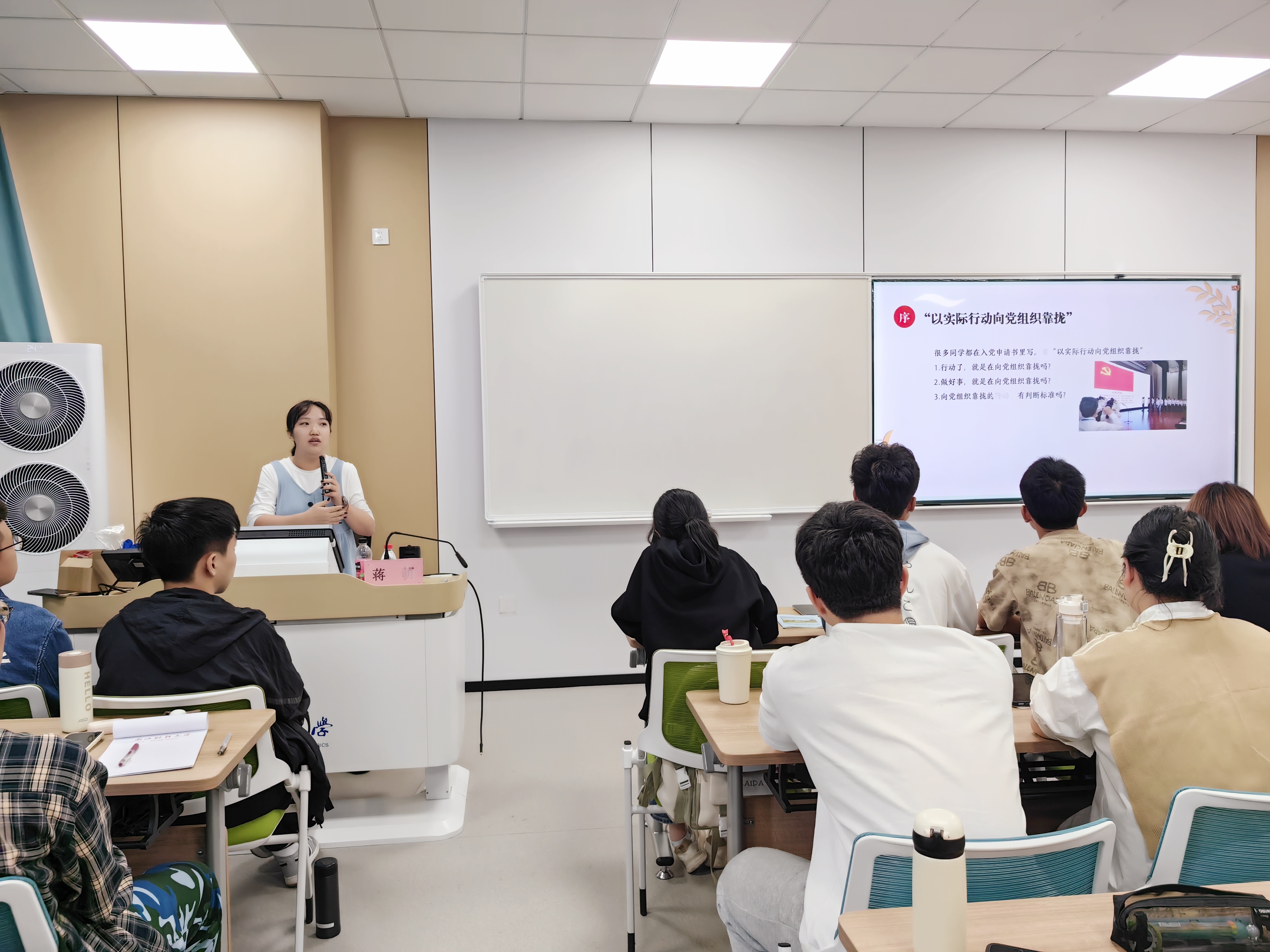 )党委于8号学院楼101教室举办分党校第一期学习班的理论授课。全体入党申请人参加学习班。