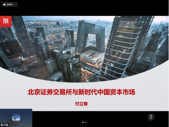 付研究员的分享让同学们对北交所有了进一步的认识,对于当下中国经济发展有了更为深刻的认识,也为同学们日后的研究学习打下了基础,促进了同学们学科交叉思维的培养。