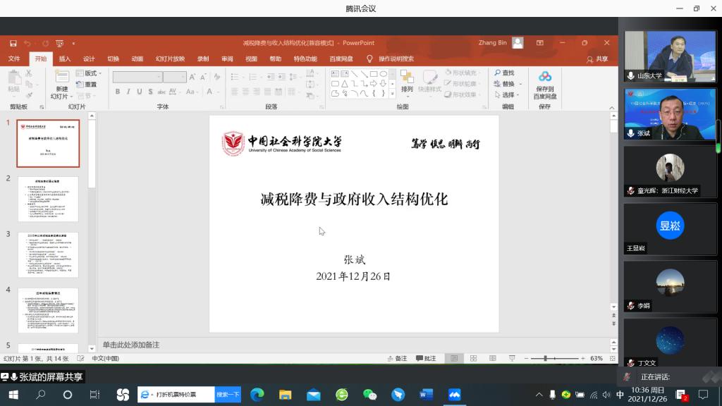 院长张斌研究员作了题为“减费降税与政府收入结构优化”的报告,他从短期与长期两个维度对减税降费进行了理论界定,梳理分析了2008年以来的减税降费政策变迁,结合当前经济社会发展背景以及短期目标和长期任务,兼顾财政的可持续性,并提出了完善税制改革、建设智慧税务、优化政府收入结构、改革全口径预算管理制度等方面的建议。