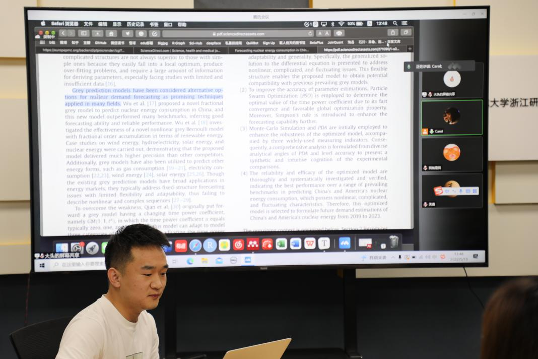 活动上,张华汉同学主要阐述了其论文“Forecasting nuclear energy consumption in China and America: An optimized structure-adaptative grey model”的主要内容及其写作的心路历程和可借鉴的方法。左立国同学就其论文“加快建设全国统一大市场背景下的数据要素市场构建”按章节对如何发挥政府有效作用,科学认识、高度重视、统筹谋划、有序推进数据要素统一市场建设分条缕析,让同学们对该主题有了更为详细的了解,阐述过后,左立国同学还分享了其写作的方法和过程。在作者们汇报之后,童光辉老师和百家乐官网