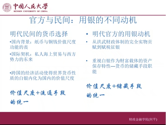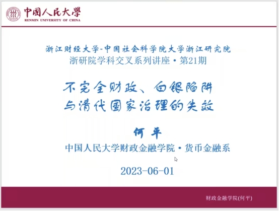6月1日晚,中国人民大学财政金融学院货币金融系教授、金融学博士生导师、中国金融学会金融史专业委员会副主任何平应邀作题为“不完全财政、白银陷阱与清代国家治理的失效”的专题讲座。本讲座由百家乐官网