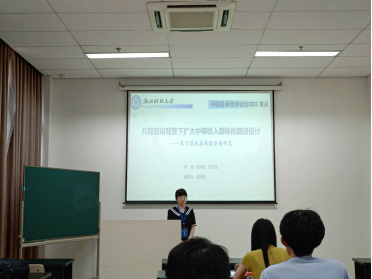 2021级博士研究生任志远和2022级博士研究生潘美莹合作的论文“共同富裕背景下扩大中等收入群体的路径设计——基于随机森林模型的研究”入选分论坛宣讲,在主旨报告中围绕潜在和脆弱中等收入群体,将扩中过程分为“提低—扩中—稳中”三个阶段,运用随机森林模型对不同收入群体的特征进行画像,并探索设计差异化扩中路径。汇报过程中与会场各位专家老师展开了深入的交流探讨,并得到与会专家学者的充分肯定。