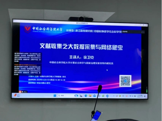 计算社会科学与国家治理实验室特约研究员徐卫克老师应邀作题为“文献收集之大数据采集与网络爬虫”的讲座,讲座由百家乐官网